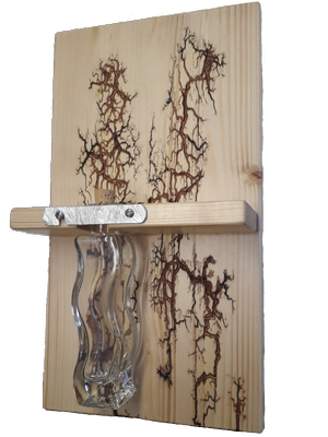 Verleihe deinem Zuhause eine natürliche Note mit unserem Wandhalter aus Holz. Er hält eine Glasflasche oder Vase sicher an der Wand und sorgt für eine stilvolle Dekoration. Das Lichtenberg-Motiv und oder Epoxydharz auf dem Holz ist ein Blickfang und fügt jedem Raum eine besondere Note hinzu.