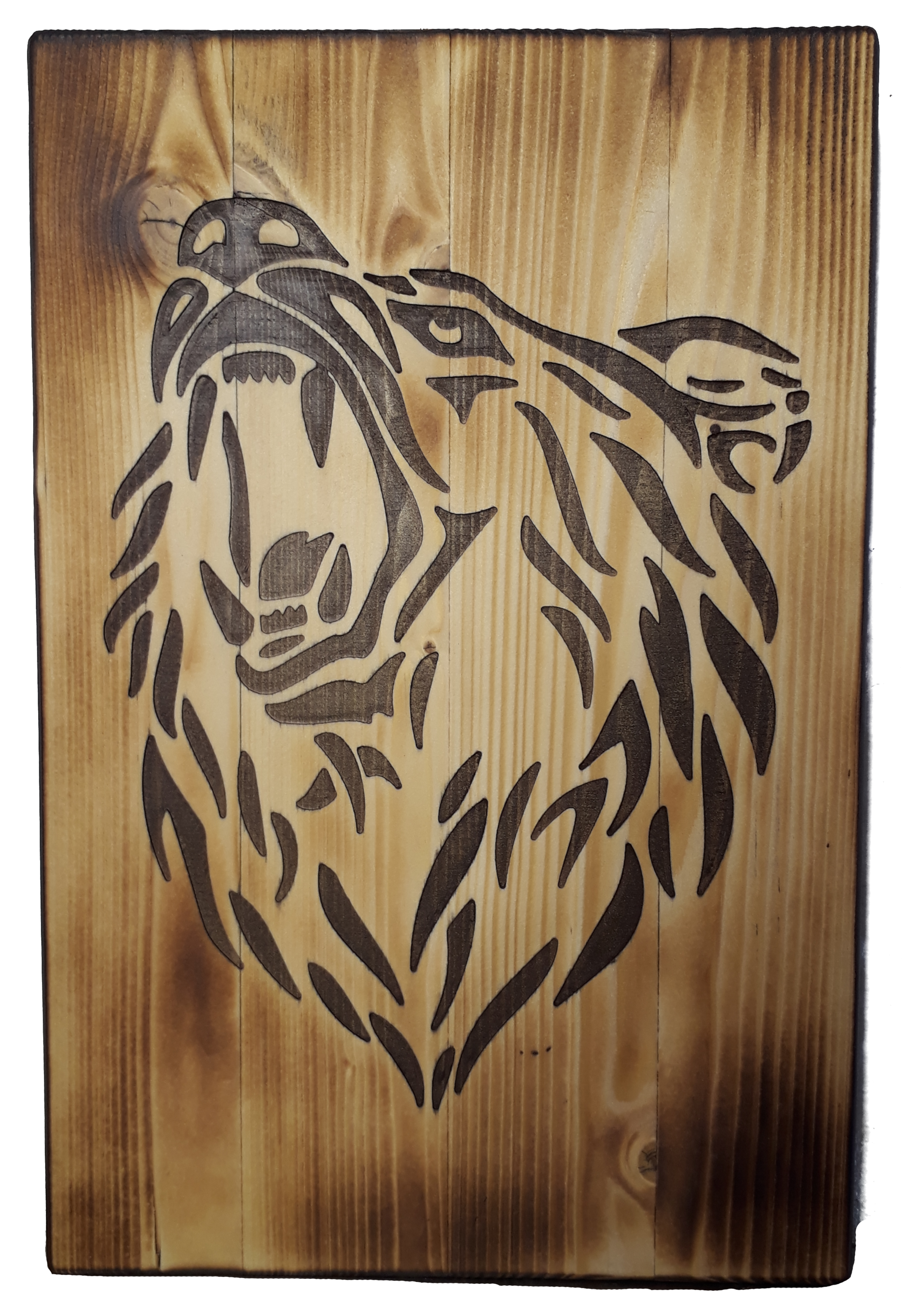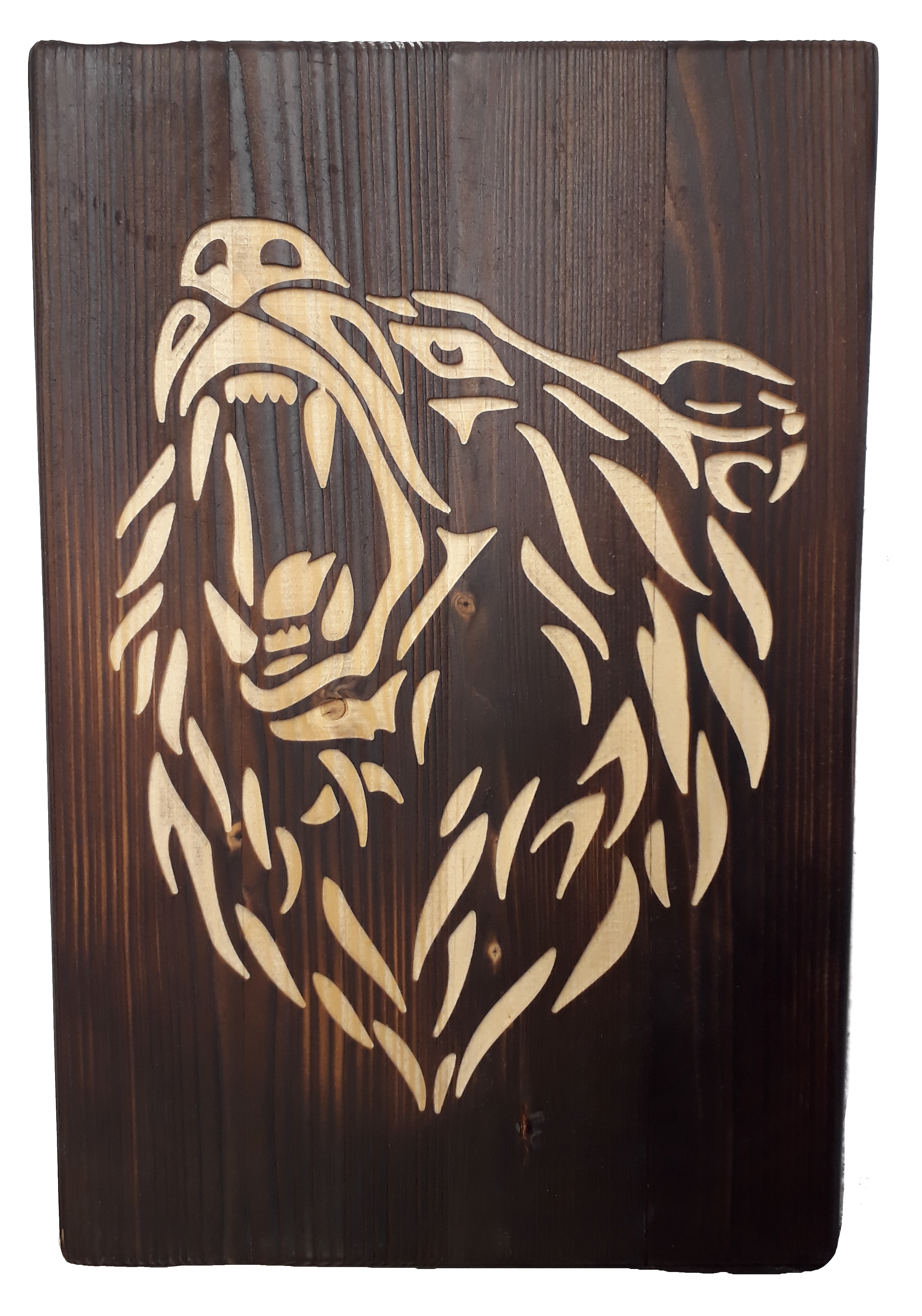 Unser Bild ist aus hochwertigem Holz gefertigt und von Hand geflammt, um eine rustikale und natürliche Optik zu erzielen. Die Tiermotive wurden sorgfältig in das Holz gefräst, um ein 3D-Erlebnis zu schaffen, das die Schönheit und Kraft der Tiere in der Natur widerspiegelt.